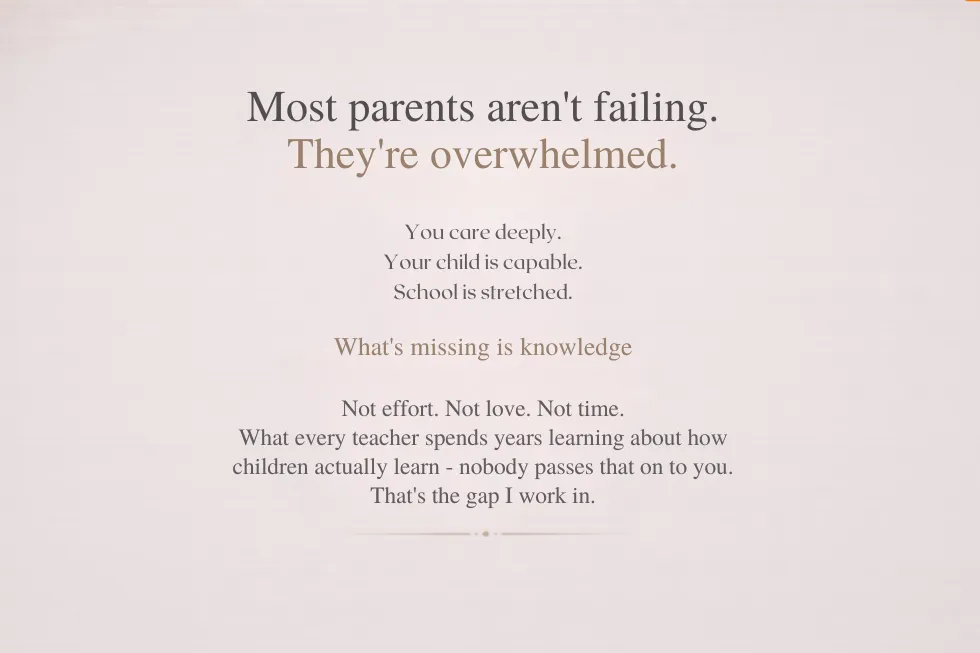 “Where we guide YOU step-by-step to become the calm, confident educator your child needs.”